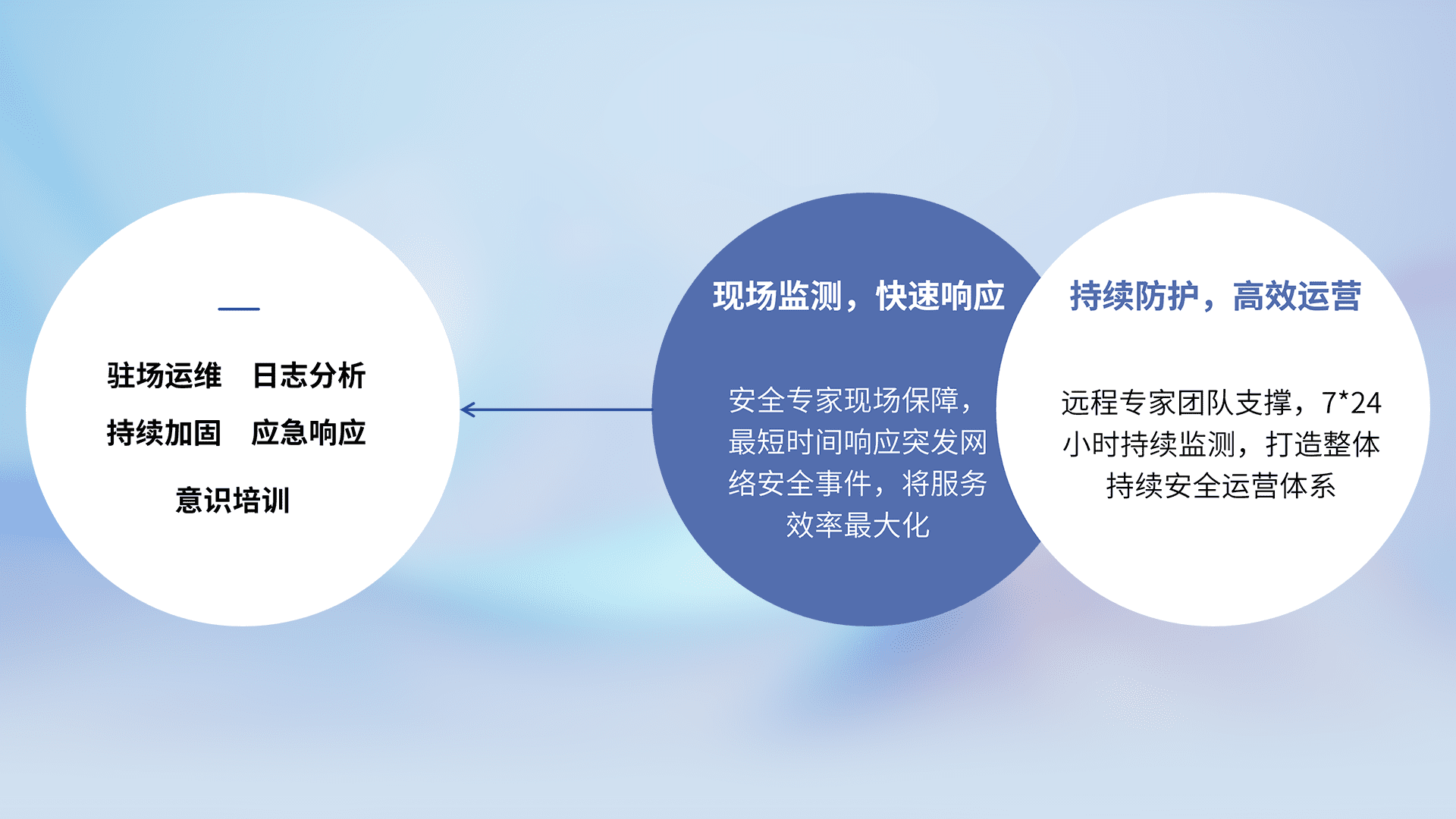 针对客户行业特性,,,,提供专属的一站式安全管理服务,,,帮助客户全面感知网络空间威胁,,,通过安全专家的线上、、、线下防护支持,,,,实现风险闭环,,将安全保障常态化,,为客户打造常态化安全运维运营服务。。。。